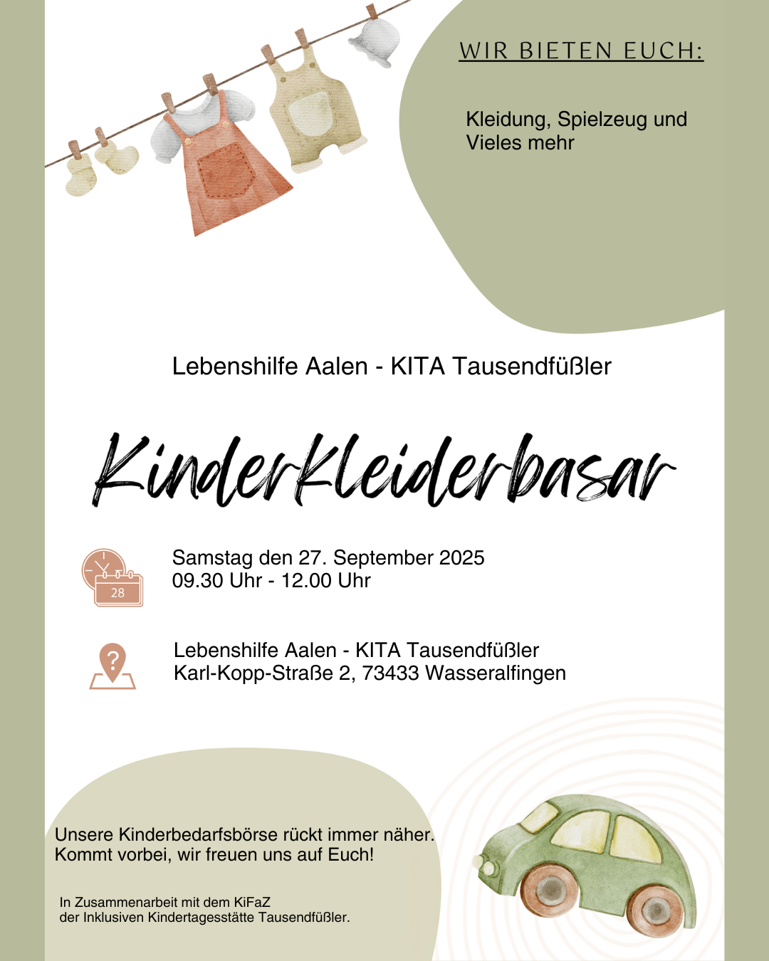 Reminder Samstag, 27. September 2025 9:30 bis 12:00 Uhr Karl-Kopp-Str. 2, 73433 Aalen Organisiert von Eltern in Zusammenarbeit mi...