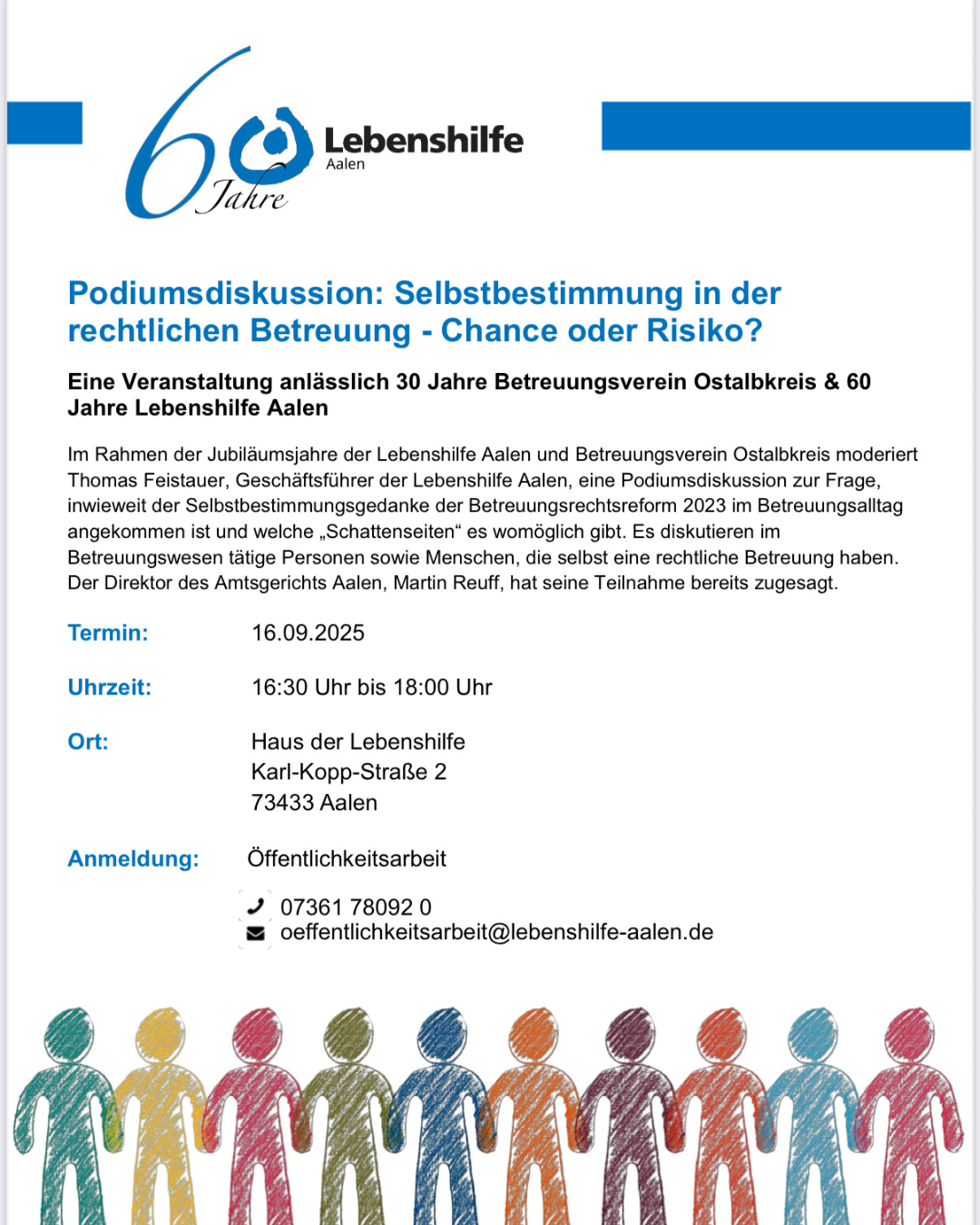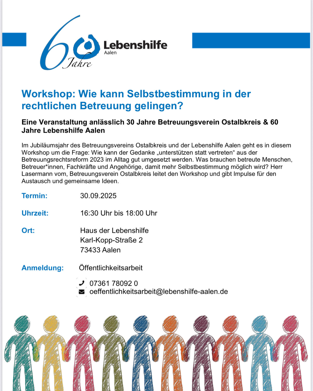 Anlässlich 30 Jahre Betreuungsverein Ostalbkreis e.V. und 60 Jahre Lebenshilfe Aalen fand am gestrigen 30. September 2025 eine gemeinsame Koo...